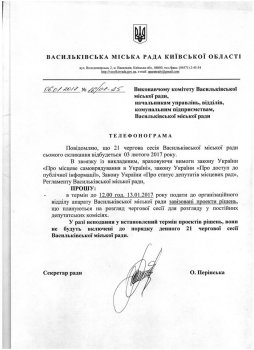 Інформація щодо проведення двадцять першої чергової сесії Васильківської міської ради VII скликання.