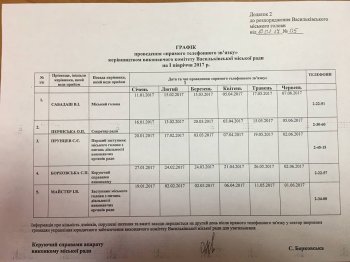 ГРАФІК проведення "прямого телефонного зв"язку" керівництвом виконавчого комітету Васильківської міської ради на І півріччя 2017 року.