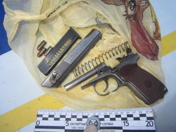 Виїздом на місце події працівники поліції встановили, що розбишака був неодноразово раніше судимий за вчинення кримінальних правопорушень та нещодавно звільнився з місць позбавлення волі по «закону Савченко». Під час проведення поверхневого огляду поліцейські виявили у 26-річного уродженця Черкаської області предмет, схожий на бойовий пістолет Макарова, та три бойові набої калібру 9 мм.