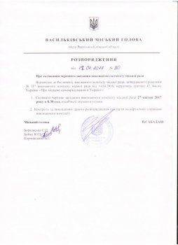 ВАСИЛЬКІВСЬКА МІСЬКА РАДА 08600, Київська область, м. Васильків, вул. Соборна, 56 +38 (04571) 2-22-51 vasylkiv.org@gmail.com |