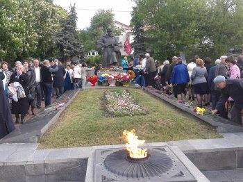 Усі присутні хвилиною мовчання вшанували полеглих в роки Другої Світової війни і воїнів антитерористичної операції та поклали квіти до Вічного вогню та могили Невідомого солдата.