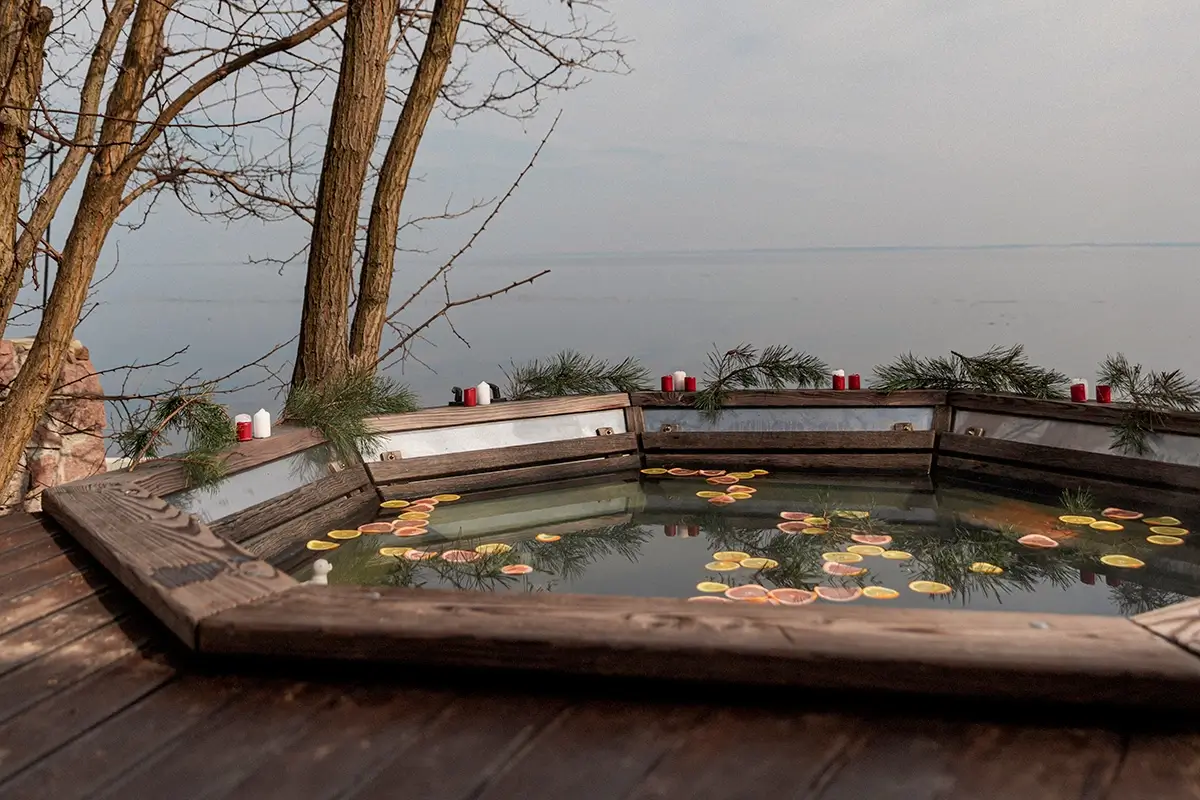 У MOREWELL традиційні чани отримали сучасне переосмислення. Вони розташовані просто неба, з видом на воду та сосновий ліс. Коли пара піднімається над поверхнею, здається, що час розчиняється у тиші. Кожен чан виготовлений із високоякісного дерева та оброблений натуральними оліями для збереження аромату й чистоти води.
