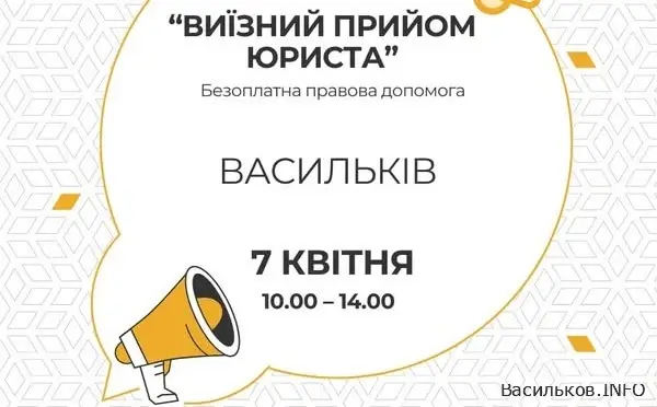 7 квітня 2026 року у Василькові відбудеться виїзний прийом громадян, під час якого жителі Васильківської громади зможуть отримати безоплатну юридичну допомогу від фахівця Обухівського районного осередку ГО «Захист держави».