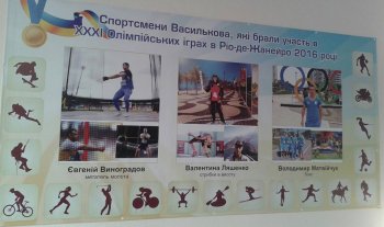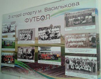 У відремонтованому фойє розміщені плакати з історії футболу та хокею на траві міста Василькова, а також плакати з фото наших спортсменів сьогодення, яких по праву називають "Спортивна гордість України".