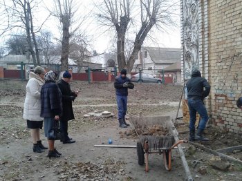 Перший заступник міського голови Прунцев С.Є., начальник відділу освіти Васильківської міської ради Козак Л.О. перевірили хід виконання капітального ремонту відмощення навколо будівлі та цоколю у Васильківських загальноосвітніх школах №7 та №1.