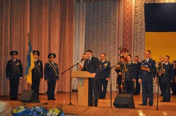 У своєму привітанні О.Л. Горган зазначив: "Маю за велику честь вітати Вас з Днем Збройних Сил України та Міжнародним Днем волонтера. Радий сьогодні бути у місті Василькові, адже Васильків - військова столиця Київщини. Сьогодні нагода згадати усіх, хто віддав свої життя за незалежність України, за мирне небо над нашою державою" та відзначив кращих військовослужбовців і волонтерів Почесними Грамотами Київської обласної державної адміністрації.