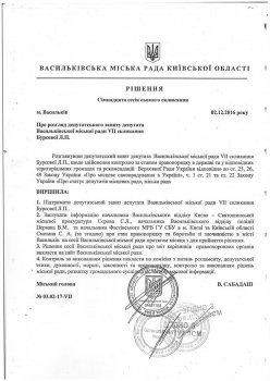 Рішення сімнадцятої сесії сьомого скликання "Про розгляд депутатського запиту депутата Васильківської міської ради VII скликання Бурсової Л.П."